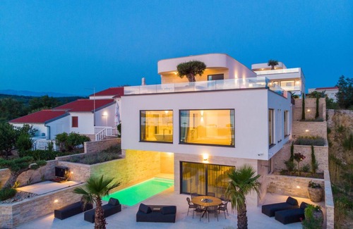 The brand new luxury waterfront Villa Four Seasons Ljubac Seaside (2023.) situated in Ražanac, 20 km from the City of Zadar, offers an amazing roof terrace with sea and pool views, as well as a year-round heated outdoor pool, sauna and hot tub. This villa has a free private parking and Wi-Fi. This villa features 3 bedrooms, 4 bathrooms with a shower, a full equipped kitchen and flat-screen TV, a seating area and a fitness room. Towels and bed linen are available in the villa.