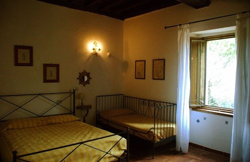 Palazzo Forani è un'imponente villa del XVI secolo con una torre del XIII secolo, una delle sole cinque fortificazioni rimaste del borgo medievale in pietra di Casperia, arroccato su una collina nelle splendide colline della Sabina a 1 ora da Roma. La proprietà consiste in un'ampia sistemazione per 29 persone (+ 3 divani letto) con 2 cucine nel Granaio e negli Archi e angolo cucina nel Torrione, un ampio cortile, meravigliosi giardini e viste mozzafiato - ogni camera doppia costa €85 a notte e €95 per ogni camera tripla a notte. Vi è un contributo per il riscaldamento di €250 in inverno.