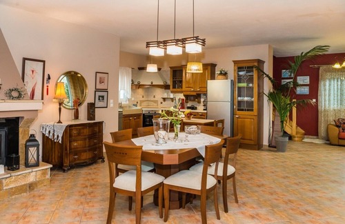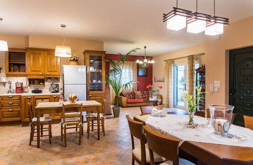 Situated in the town’s suburbs towards Argassi area, Garden Star Villa offers accommodation with private parking. Guests can enjoy the garden around the villa full of seasonal fruit bearing trees. BBQ facilities and a handmade Japanese style outdoor kiosk are offered at the property. The open plan living, dining and traditional fully equipped kitchen area open out onto the terrace with views towards the garden. Garden Star Villa is a mixture of traditional and modern architecture, featuring handmade furniture and energy-generating fireplace.