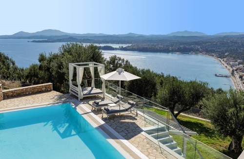 Cool and contemporary with an elegant finish, Villa Gemini Angelo offers spectacular views stretching from Ipsos, across the island and out to sea. The interiors feature bespoke items and are beautifully luxurious. Outside, the generously sized pool terrace and large lawn allows ample opportunity to make the most of the outdoors. In a great hillside location between the resorts of Barbati and Ipsos, you’ll have beaches, plus plenty of bars and restaurants just over 5 minutes’ drive from the villa. Pool heating, WiFi and air conditioning/ heating in all the bedrooms are included.