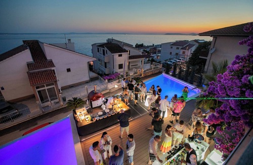Best-rates for the Podstrana villa starts from $2,398 per night with includes Ocean View, Balcony/Terrace, Security/Safety, Guest Services, Air Conditioner, Wellness Facilities, Fireplace/Heating, Internet, Kitchen, Spa, View, Sports/Activities, Entertainment, Barbecue/Outdoor Cooking, TV, Oceanfront, Breakfast, Child Friendly, Hot Tub, Laundry, Bedding/Linens, Parking, Pool, Private Pool with all other amenities. Perfect for Weddings is committed to ensuring every guest experiences a comfortable and extraordinary stay, whether planning a romantic getaway, a honeymoon, a pet-friendly stay, or celebrating with the entire wedding party.