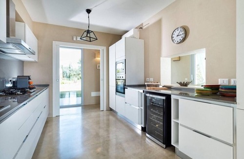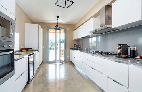 Facilities: Air conditioning (units in all rooms), Heating (pumps in all rooms), Mosquito nets (in the bedrooms), Internet Wi-Fi, Smart TV, Hi-Fi system, Kitchen, Fridge freezer, Deep freezer, Electric oven, Gas hob: 9 burners, Microwave, Coffee percolator, Nespresso machine, Toaster, Highchairs (2), Washing machine, Tumble dryer, Iron, Hairdryer, Cots (2), Bed linen (weekly change), Bath towels (midweek change), Pool towels (weekly change), Fireproof blanket, Smoke detector, Fitness area, Cleaning (kitchen, bathrooms and bedrooms – midweek 4 hours), Garden, Terrace, Swimming pool, Sun loungers, Umbrella, Outdoor dining, Outdoor kitchen, Table tennis table, Onsite parking, Welcome basket (breakfast items).
