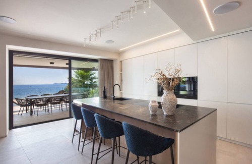 Villa Grace is the ideal destination for those seeking privacy and exclusive spaces. Here your eyes will be forever captivated by the spectacular view of Lake Garda. On the left, the boats enter and leave the small and characteristic port of Manerba del Garda and from the garden, a private and secure access connects the house directly to the lake.Access to the property is via a private road that leads to a sliding gate that welcomes the guests into the private spaces of the Villa and is connected by a ramp directly to the front of the tipper of the garage that can accommodate 2 cars, equipped with a charging station for electric cars.After unloading your luggage you will immediately discover the modern and contemporary lines of Villa Grace, like its main entrance, located next to the garages, equipped with a code and Badge. Here you will find the anteroom, with elevator and stairs to access the 3 floors of the Villa, and the entrance to the sleeping area.ENTRANCE FLOOR Villa Grace hosts the sleeping area on its entrance floor. Spacious and luxurious lake view bedrooms with ensuite bathrooms, a wellness area with sauna and shower with Turkish bath, and a large covered balcony/terrace with breathtaking views of Lake GardaStarting from the right: Master Room with a small sitting room, a large SMART TV and en suite bathroom with shower. The lake view from here is spectacular, and you can admire it in its entirety thanks to the large windows.Next to the room, we find the sauna overlooking the lake, perfect to experience the experience of pure relaxation enjoying a viewpoint that only our territory can offer. Going to the left a bathroom with a double sink and shower and a bathroom with bathtub are at the service of the other 3 double bedrooms located on the floor.A fifth double bedroom with an en-suite bathroom with shower, located on the ground floor, completes the sleeping area.GROUND FLOOR The ground floor of the Villa is accessed through the internal staircase or by the elevator. Here is the beating heart of Villa Grace, a perfect harmony and connection between the indoor and outdoor spaces that will brighten and accompany your day.Villa Grace is the ideal place to create moments of conviviality and well-being in total privacy and exclusive spaces.The large living area consists of an open space with full-walled windows overlooking the covered terrace and infinity pool.On one side we have the living room furnished with a comfortable large leather sofa and a 60-inch smart TV where you can relax, thanks to the breeze that passes through the large windows open on the outside.Villa Grace is designed to create convivial experiences, so typical for those who choose a holiday on Lake Garda. The kitchen here can be used for every need, thanks to all the elements and appliances that allow you to live it to the best, double refrigerator, wine cellar with recessed in the kitchen, ovens and microwaves, dishwasher, induction hob with built-in suction hood, American coffee machine, Nespresso, toaster. The cook of the group, or a private chef at home, can cook on the large island of the kitchen, and prepare the dishes to be consumed on the large indoor dining table for 10 people or on the outdoor table, protected under the porch.Villa Grace is equipped with an intelligent home automation system that can be used thanks to the two IPADs on the walls on the ground floor and first floor, and that allows a very easy and simple management of the main utilities. From the central air conditioning system, convenient to use and efficient in cooling the entire house, to the management of the exterior and interior lighting of the villa, to the control of gates and accesses, for a safe stay.OUTSIDELive your outdoor holiday in Villa GraceOn the terrace on the ground floor opens the large infinity pool with views of the garden rich in flowers and colourful plants and the lake, with temperate temperatures between April and October and with a solarium, equipped with sun loungers to enjoy the Lake Garda and an outdoor lounge perfect for an aperitif by the pool.Villa Grace has private access to the waters of Lake Garda, through a gate located between the garden and the lake with a very small beach. It is also equipped with a closed dock where you can store equipment to be used on the lake. C.I.017102-LIM-00034. CIN.IT017102B4SXX77UKA