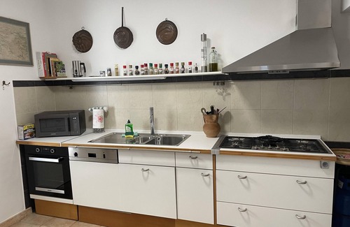The completely independent villa is on two levels and consists on the ground floor of a large living room, a fully equipped independent kitchen, a double bedroom, a bathroom with shower and a portico equipped with table and chairs for eating outside.