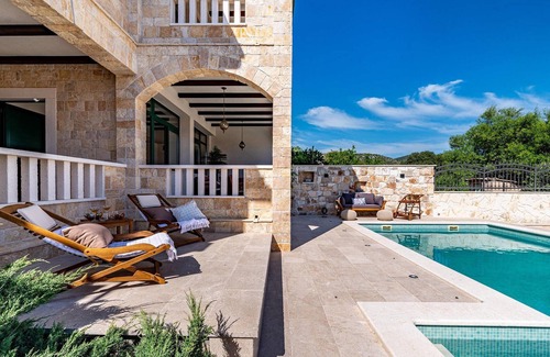 The Villa Heritage Resort is ideal for 2 families who would like to spend their vacation together and still value privacy. The traditional stone villa is located in the small village of Vrsine not far from Split and offers two apartments on two floors, each with a living and dining area and a fully equipped kitchen. Each apartment has a bedroom with a comfortable double bed, a sofa bed in the living area for 2 more people and a modern bathroom. In total, the Villa Heritage Resort can accommodate 8 guests.