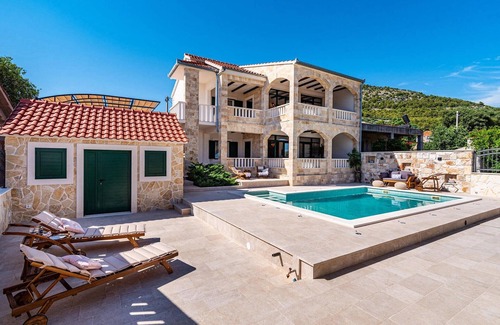 Outside, you can enjoy the refreshing 35m2 pool, soak up the Dalmatian sun on one of the sun loungers or gather family and friends in the cozy covered lounge to plan excursions together in the beautiful region. Wellness enthusiasts should not forget to mention the sauna in the pool house, the children will certainly have fun with the games console and, as a small highlight for wine lovers, the wine fridge in both kitchens will certainly not be out of place. As you can see, there is something for everyone. :-)