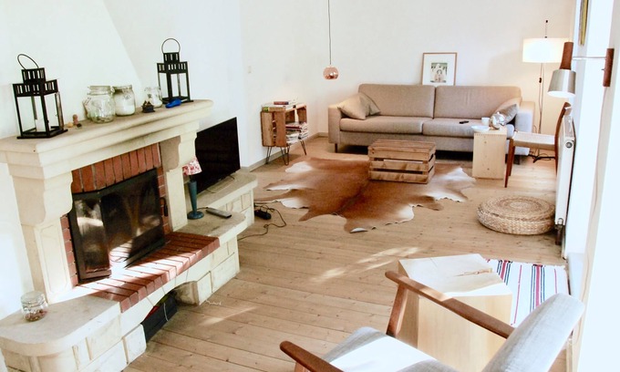 The house is over 100 years old and renovated with much love and charm. There are 3 bedrooms (1 double and a children's room for a maximum of 2 children upstairs, 1 double in the basement) and 2 bathrooms each with toilet and bath. Fireplace, garden with table tennis and large, sunny veranda.