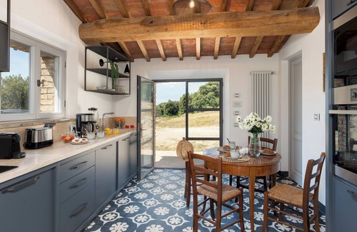 Villa Il Pozzo is a former 19th-century farmhouse set within a private estate in the Val di Cecina, surrounded by woodland and rolling Tuscan hills. Carefully restored, the villa combines traditional materials such as exposed stone, terracotta floors and wooden beamed ceilings with contemporary finishes and furnishings, creating colourful interiors with generous spaces across three levels. Spanning seven bedroom (in the full version) and spacious living areas, with dining both inside and out on the terrace, while French vintage details and artworks add character throughout. Lawned and set across different levels, the garden is full of greenery and mature trees, with a panoramic pool on a lower terrace. Guests can enjoy peaceful walks or bike rides within the summer, while being within easy reach of Volterra, San Gimignano, Siena and the coast.