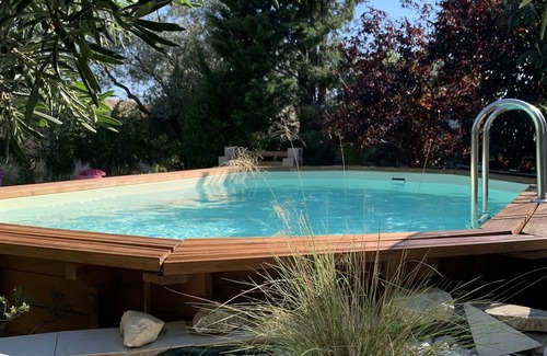 Villa well appointed with modern materials. An above-ground wooden swimming pool, a pretty garden. Equipped kitchen, quiet. All the necessary comfort.