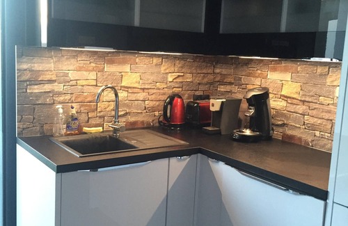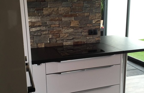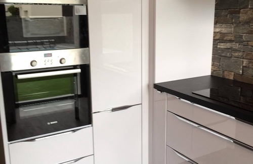 1 semi-open kitchen equipped with induction hob, fridge, freezer, oven, microwave, dishwasher ...
