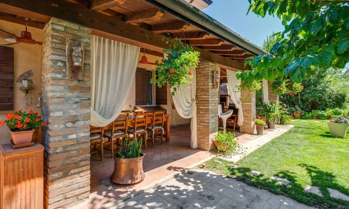 Located in Castelbelforte, this is a perfect staying place for friends/family to spend quality time in a quiet and green place. A shared pool will allow you to take a dip anytime. This pet-friendly home also has a billiards table, table tennis and barbeque will keep you delighted here, you can get your own charcoal or avail it for a fee. Do enjoy meals under the gazebo at the poolside.