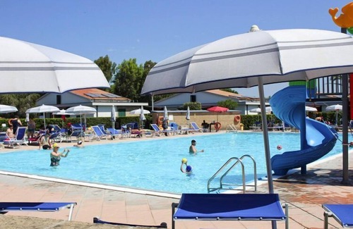 The family-friendly holiday complex welcomes you on the outskirts of Cecina Mare, in the heart of Tuscany. The fantastically long sandy beaches are just 800 metres away. The apartments in the two-story residence (type A and type B) and the beautiful single-story villas (type C and type D), each with four apartments, are grouped around the popular pool area with children's area in the spacious, well-kept gardens. While you are pampered in the in-house wellness area (for a fee), an animation team will ensure that the children don't get bored in the high season. You can enjoy culinary delicacies in the restaurant with pizzeria, an outdoor terrace and pool view. The coastal promenade with sandy beach and numerous restaurants, cafés and bars can be reached after a short walk. The beaches along the pine forest south of the town are free of charge, unlike those on the coastal promenade. The pine forest stretches for about 15 kilometers from the mouth of the river to the neighboring community of Bibbona and provides pleasant cooling, especially in summer. The area, which is also home to many animal species, has been a nature reserve since 1977 (Riserva Statale Tomboli di Cecina). This is what your holiday complex offers: 35 buildings, 156 residential units, Reception, Restaurant, snack bar, kiosk, Hairdresser, Communal terrace, Parking space. For a fee: washing machine. Activities: Communal outdoor pool 300 sqm, hydromassage, outdoor shower, loungers, parasols. Children's pool 25 sqm (open from the beginning of April to the end of September, depending on the weather). Beach volleyball, bocce, fitness room, tennis. For a fee: Wellness area, massages, aromatherapy, sauna, jacuzzi, Bike rental. For children: playground, climbing frame, slide, swing, playroom, entertainment (seasonal) Extras included: Shuttle bus to the beach, only in high season Activities nearby: An aqua park is in the immediate vicinity, the famous thermal springs of Tuscany can be reached quickly. Cecina Mare is ideal for bike tours and excursions into the hilly surroundings with medieval villages such as Casale Marittimo or Bolgheri, known for its famous wines. Livorno, Pisa, Grosseto (100 kilometers) and Florence (115 kilometers) are the three most important cities that you should not miss on your excursions. Our tip: Visit the island of Elba on a day trip from Piombino (50 kilometers), the ferry crossing only takes about an hour. Note: Full board only possible from June 1st to September 14th, 25