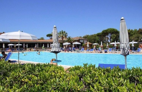 The family-friendly holiday complex welcomes you on the outskirts of Cecina Mare, in the heart of Tuscany. The fantastically long sandy beaches are just 800 metres away. The apartments in the two-story residence (type A and type B) and the beautiful single-story villas (type C and type D), each with four apartments, are grouped around the popular pool area with children's area in the spacious, well-kept gardens. While you are pampered in the in-house wellness area (for a fee), an animation team will ensure that the children don't get bored in the high season. You can enjoy culinary delicacies in the restaurant with pizzeria, an outdoor terrace and pool view. The coastal promenade with sandy beach and numerous restaurants, cafés and bars can be reached after a short walk. The beaches along the pine forest south of the town are free of charge, unlike those on the coastal promenade. The pine forest stretches for about 15 kilometers from the mouth of the river to the neighboring community of Bibbona and provides pleasant cooling, especially in summer. The area, which is also home to many animal species, has been a nature reserve since 1977 (Riserva Statale Tomboli di Cecina). This is what your holiday complex offers: 35 buildings, 156 residential units, Reception, Restaurant, snack bar, kiosk, Hairdresser, Communal terrace, Parking space. For a fee: washing machine. Activities: Communal outdoor pool 300 sqm, hydromassage, outdoor shower, loungers, parasols. Children's pool 25 sqm (open from the beginning of April to the end of September, depending on the weather). Beach volleyball, bocce, fitness room, tennis. For a fee: Wellness area, massages, aromatherapy, sauna, jacuzzi, Bike rental. For children: playground, climbing frame, slide, swing, playroom, entertainment (seasonal) Extras included: Shuttle bus to the beach, only in high season Activities nearby: An aqua park is in the immediate vicinity, the famous thermal springs of Tuscany can be reached quickly. Cecina Mare is ideal for bike tours and excursions into the hilly surroundings with medieval villages such as Casale Marittimo or Bolgheri, known for its famous wines. Livorno, Pisa, Grosseto (100 kilometers) and Florence (115 kilometers) are the three most important cities that you should not miss on your excursions. Our tip: Visit the island of Elba on a day trip from Piombino (50 kilometers), the ferry crossing only takes about an hour. Note: Full board only possible from June 1st to September 14th, 25