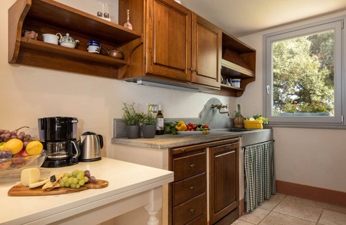 Bedroom 4 and Bedroom 5 are in the Suite Giuggiolo on the first floor (17 steps). Accessed from an external stairway leading to the scenic little balcony into a spacious living area with sofa and kitchen equipped for breakfast.