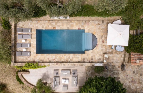 Immersed in the heart of Tuscany, nestled on the south side of the hill where the ancient Etruscan town of Cortona is located, lies Tenuta Pomona, a place where one can live an unforgettable experience, in a property of undisputed charm and luxury. The villa enjoys one of the most beautiful views of the Cortona hillside, thanks to its panoramic position with breathtaking views of the Val di Chiana and the Cortona skyline. The villa is privately located away from traffic noise and is set in a scenario where vegetation, olive trees and the typical terraces of this particular hill cone create a place of rare beauty and strong visual impact.