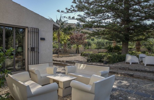 Experience exclusivity and charm in the heart of the Sicilian countryside, just miles from the sea and near the iconic Valley of the Temples. Perched on a hill, this villa offers a tranquil stay in the rustic simplicity of an ancient farmhouse and the renovated rooms of an old train station and winery, surrounded by an olive grove.