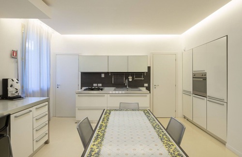 ‣ Each of the four kitchens features a four-gas burner, a fridge with an integrated freezer, a pods coffee machine, a microwave, an electric oven, a kettle, a toaster and in the Kitchen o