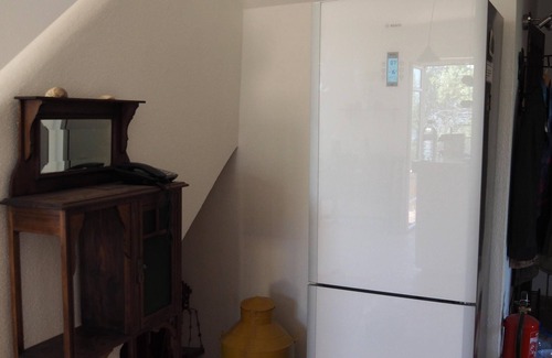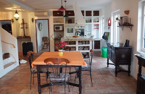 2.000 m² garden, completely fenced, was built in 1992 and 2015 to high modern standards. It is located on a south-facing hillside in a peaceful and private location overlooking the beautiful countryside. It is a safe area, and, in the same time, quite private. It is the last house at the end of a small road, no cars around. The next neighbours are 200-300 meters away, all around ecological area with olive, almond and carob trees.The area is great for short or longer trips. Because of its elevated position the ocean can be seen from the villa. The closest beach at Fuzeta is only about 20 minutes away by car. The villa has all modern comfort and is very well equiped with all needed devices (air conditioning, Hi Fi, dish washer, washing mashine, oven, microwave, etc.). For winter time a modern heating system for all the house is available. It uses solar enery (hot water), wood and/or electricity. By using the chimney in the living area (wood), also hot water for heating and washing is produced. The photovoltaic system produce electricity, but, of course, we are connected to the normal electricity supplier. The living area is very large, including the american kitchen, dinning place, sitting group, studio in 1.st floor, partly very high room, which is very pleasant especially im summer. There are 3 bedrooms - 2 in the ground floor, 1 in the first floor. The windows are equiped with profesional musquitos nets, which, of course, keep also the flies out. All the bedrooms have beds with high quality mattresses, which can be turned around - so that you can have rather hard or memeory effect i.e.rather softer. The bathroom is quite large and has a bathtube, shower place, WC, bidet, washbasin. The second bathroom has a washbasin, WC and bidet. Another shower place with hot and cold water is near the pool. A nice barbeque on the ground floor terrace, tables for minimum 6 persons in and outside, a large well maintained garden and, of course, the pool very suitable also for small children, since it has stairs and is heaten with solar energy even in summer to reach 28-29 °C. In winter the solar energy is normally used to support the heating system in house, and not for the pool. Once a week clean service is included in price (also bed lines and towels change).
