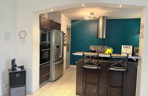Equipped open kitchen (induction hob, oven, American fridge, dishwasher, Nespresso, washing machine ..)