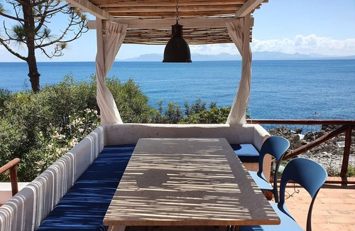 Our "Villa Tonnara" is the only villa in all of San Vito located only 20 meters from the sea. It has a private terrace exclusively for our guests with a stunning view of the sea. From the terrace and all the bedrooms you can enjoy a breathtaking panorama. The villa is surrounded by a garden and Mediterranean pines, immersed in silence and looking over the bay with deep blue waters. Our white cottage was built in the 70es in the old part of Tonnara, with a very small number of constructions in the surrounding area.