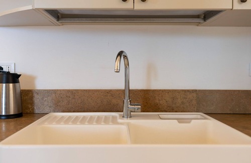 In the main house, you'll find a cozy living/dining room, a well-equipped kitchen with a large SMEG gas stove, roomy refrigerator/freezer, microwave oven, and dishwasher. There are two bedrooms, and a guest toilet/laundry room. The master bedroom features an en suite bathroom with a generous shower and double sink, while the second bedroom offers two single beds and an en suite bathroom with a luxurious bathtub.