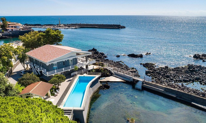 Nestled like a precious jewel on the lava coast between Catania and Taormina, Villa Geranio is more than a luxury residence: it is an invitation to the sweet Sicilian life. A villa where time melts away in the sun, the soul is intoxicated by the salty scent, and the horizon blends with the deep blue of the Mediterranean.