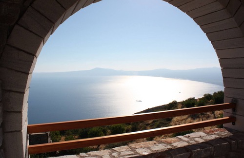 The ground floor has a modern kitchen (fridge, water boiler, microwave, oven, dishwasher, coffee machine, toaster) with a dining area and a spacious living room (with convertible sofa that sleeps 2 adults), fireplace, TV, DVD Player, Air-condition, shower/WC and balconies with panoramic view over the Messinian Gulf. Central heating is charge available. The laundry is provided upon request.