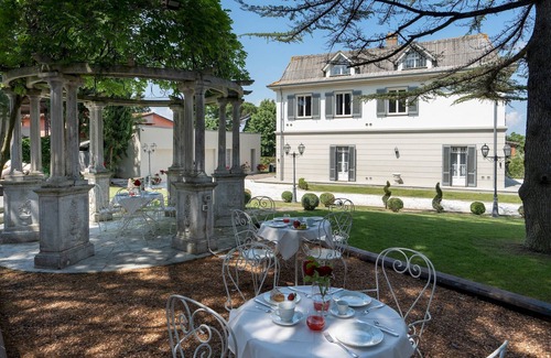 Villa Irma, located in Casciana Terme in the Pisan hills of Tuscany, has been recently renovated in every single detail, customising it with taste and charm, thanks to the use of prestigious materials in an optimal high-profile architectural research of the finishes complementary to the use of the villa. The three-floor structure evokes French Art Nouveau style with the dove grey and ivory colours of the external walls and the stylised rinceaux motifs for the windows and glass doors. Indoors, the novel design path is characterised by elegant forms, pure colours and contemporary objets d'art: all the rooms have been lightened with luxurious custom-made furniture whose design is inspired by refined modernity, the exclusive upholstery and accessories create a warm atmosphere bestowing on the villa high standards of quality and comfort. The clean lines are balanced by the prestigious Italian herringbone parquet flooring in the bedrooms and living areas; the bathrooms of minimalist design with king size showers and suspended bathroom fixtures are all in prestigious marble with original slabs from the respective extraction areas of the renowned Carrara quarries; in the kitchen, the total white decor is combined with furniture in white lacquered wood with a black alabaster worktop of contemporary lines. The decorative stuccos of the ceilings create dynamism and elegance in all the rooms in a duality of shapes that replicate the rectangular lines of the rooms and the circular shape of the lighting fixtures. The top floor consists of a living room with billiard table, bar and TV lounge in which the volterrane floor evokes the style of the large fireplace, and the white herringbone boiserie on the walls links with the slightly sloping ceiling. The villa is set in an Italian garden planted with lawn with large larches and cypresses that guarantee areas of natural shade, a large Baroque fountain with horses and shells to welcome us, stone statues integrating the appurtenances. The swimming pool lies in a secluded position, surrounded by a stone solarium, next to the romantic Art Nouveau gazebo in stone and wisteria. Villa Irma is located in the town of Casciana Terme, yet enjoys privacy thanks to the park being completely enclosed by walls and hedges, with the added advantage of having, just a few metres away, shops, services and the spa, reached on foot across the adjacent tree-lined avenue. Within easy reach of the villa are many destinations of great artistic and cultural interest such as the Tuscan towns of Pisa, Lucca, Florence, San Gimignano, Volterra and Siena, various renowned spas in the area such as those of Casciana itself, Uliveto and Montecatini, and the beautiful beaches of the Etruscan Coast, the Livorno coast and Versilia. Villa Irma is located in an area of rare beauty, alluring and interesting in every season, the ideal location to stay all year round thanks to the services at hand and the heatable swimming pool.