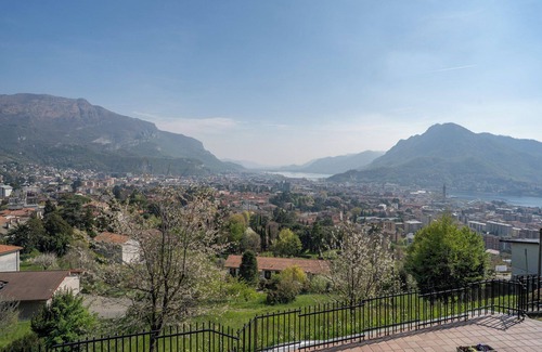 Villa in Lecco with breathtaking views of Lake Como. Located on a small hill just below the legendary San Martino, the villa enjoys one of the best views in Lecco, overlooking the entire city and nearby towns, with a stunning view of the surrounding mountains: from the famous "Resegone" of The Betrothed to Monte Barro and even Moregallo. On clear days, you can see as far as Milan!