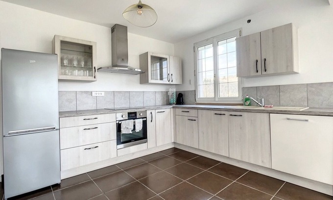 Nestled in Sainte-Feyre, this 6-bedroom, 2-bathroom vacation home brings it all within your reach. Fans of nature and the outdoors will love being 34 minutes by car from La Vallée des Peintres and 43 minutes from Le Bourg d'Hem plage. You'll easily make the 10-minute drive to Labyrinthe Geant des Monts de Gueret or the 22-minute drive to Château de Villemonteix.