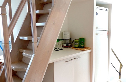 Attic level:From the ground floor staircase leading up to the attic, as a third bedroom with two single beds.