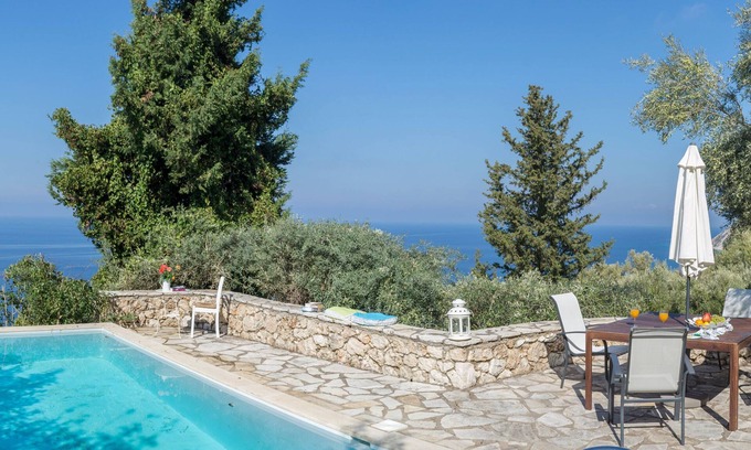 Best-rates for the Agios Nikitas villa starts from $266 per night with includes Parking, Security/Safety, Wellness Facilities, Child Friendly, Kitchen, View, Ocean View, Bedding/Linens, Fireplace/Heating, Barbecue/Outdoor Cooking, Laundry, TV, Balcony/Terrace, Oceanfront, Air Conditioner, Pet Friendly, Pool, Private Pool, Internet with all other amenities. Perfect for Weddings is committed to ensuring every guest experiences a comfortable and extraordinary stay, whether planning a romantic getaway, a honeymoon, a pet-friendly stay, or celebrating with the entire wedding party.