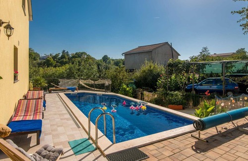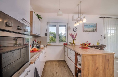 This charming Villa Josie is located in the small village of Gabonjin, 4 kilometers from Malinska. Villa Josie is a two-story house that can accommodate up to 8 people. On the ground floor of the house, there is one bedroom, bathroom and toilet, kitchen and living room. On the first floor of the house, there are 3 bedrooms with bathrooms. Each room is air-conditioned, as is the living room. On the ground floor, you can enjoy a sunny day on the terrace or swimming in the pool. Pets are not allowed in this villa.