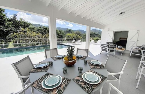 Villa Jungle Paradise is located just 5 minutes from the magnificent beach of Friar's Bay in a very unspoiled location, surrounded by tropical nature with a breathtaking view on Pic Paradis and its surrounding wild hills.