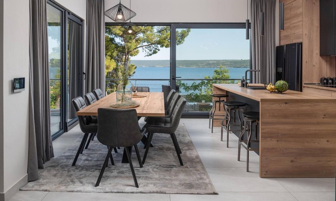 Villa Karla Posedarje offers accommodation for a total of 8 guests. The elegant and stylish ground floor of the villa provides a generous amount of natural day light and room for entertainment. It consists of a cosy living room, a modern, minimalist kitchen and a lovely dining area.