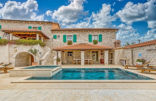 Unique, family stone villa with private pool, jacuzzi and immaculately landscaped courtyard. Villa Katarina is a very nice stone house with pool and hot tub for 10-12 people, decorated in traditional Istrian style with lots of modern details. The house was renovated in 2020 and surrounded by high stone walls. Guests are guaranteed privacy. The modern and functionally decorated interior will leave you breathless.