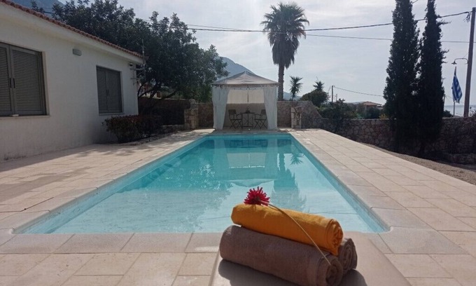 Yes, this Karavados villa has a swimming pool. Check the Facility Overview section for details about the pool and other available facilities.