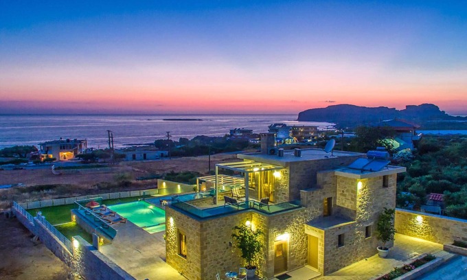Best-rates for the Falassarna villa starts from $390 per night with includes Pool, Designated Smoking Area, TV, Private Pool, Sports/Activities, Bedding/Linens, Wellness Facilities, Guest Services, Balcony/Terrace, Entertainment, Barbecue/Outdoor Cooking, Parking, View, Ocean View, Fireplace/Heating, Breakfast, Child Friendly, Kitchen, Laundry, Air Conditioner, Oceanfront, Internet with all other amenities. Perfect for Weddings is committed to ensuring every guest experiences a comfortable and extraordinary stay, whether planning a romantic getaway, a honeymoon, a pet-friendly stay, or celebrating with the entire wedding party.