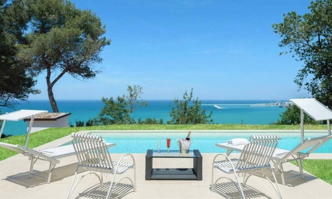 Nestled amidst the lush green hills of the Marche region, this villa offers breathtaking views of the Conero Riviera. This independent villa, complete with a private swimming pool, provides a nature-infused retreat just a 10-minute drive from the Riviera's beaches.