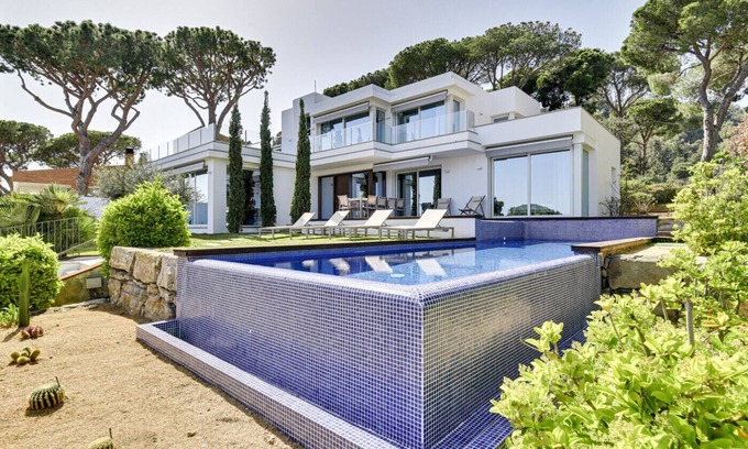 Villa La Calma is located in a dead-end street in the upscale residential bay of Cala Sant Francesc, at only 1km from the center of Blanes and a 5min walk to the beach.