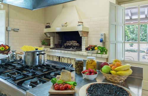 The park surrounding the house covers an area of approximately 1500 sq m within a vast property in which woods alternate with olive trees. It consists of a luxuriant flat lawned garden dotted with olive trees, oaks and colourful flowers flanking the large portico set up for relaxing in the open air air and the exclusive swimming pool. On one side of the house, next to the large parking area, is a stone structure with a wood oven and hennouse.Please notice that photos are taken in spring, therefore flower blossoming, and the colours of the gardens' grass could be different at the moment of your arrival at the villa.