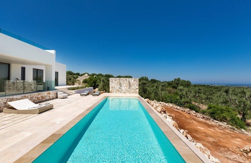 Villa La Linda is a luxury villa with infinity pool in Torre Guaceto. The villa with pool has an amazing view on the sea and it`s surrounded by the olive trees of Carovigno. It has 4 bedrooms and 4 bathrooms, it is equipped with accessories such as internet, air conditioning, washing machine and dishwasher and so much more. Pets are allowed. Villa La Linda is a fairytale-like solution where you can spend your Apulian holidays and it can accommodate up to 8 guests.