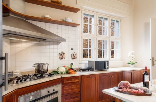 Please notice that photos are taken in spring, therefore flower blossoming, and the colours of the gardens' grass could be different at the moment of your arrival at the villa.