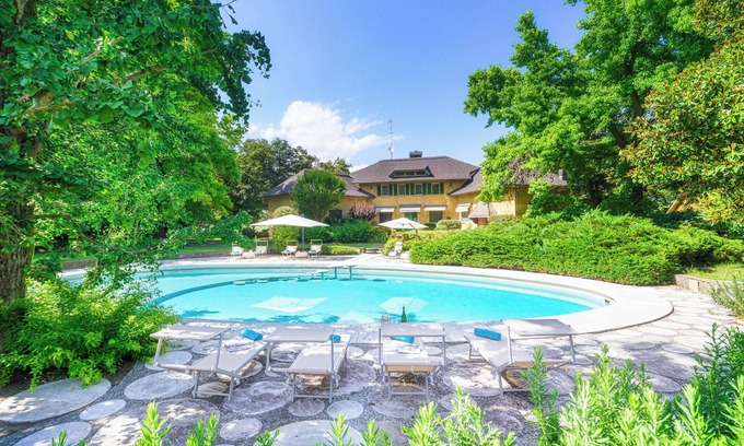 Immerse yourself in the exclusive atmosphere of Villa La Pioppa, a splendid luxury villa for rent in English style of the early '900, located in the heart of the Lombard countryside, a few kilometers from Cremona. This historic residence for rent in Lombardy, expertly renovated, offers an oasis of peace and tranquility, surrounded by a centuries-old park of 5 hectares.
