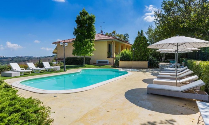 This 6 Bedrooms Villa is suitable for tourists and travelers. It has several amenities that would guarantee your comfort. These amenities include: View, Security/Safety, Sports/Activities, and several others. This is a 4 star rated property and has over 1 review with the average score of 10 . Coming to Mogliano and needing a place to stay? Be it for work or for leisure, consider staying at this Villa for your next visit, you will surely love it.