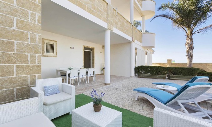 If you dream of waking up and looking at the sea of Porto Cesareo,Villa can make it come true. Theseafrontvilla is in the area La Strea,south of Porto Cesareo, one of the most loved tourist destinations in Apulia. It`s modern, equipped with the main comforts, with many bedrooms, a beautifulgardenand anequipped solarium, Villa is ideal forup to 8 guests.