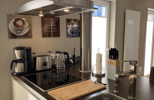 Prepare your latte macchiato, cappuccino, espresso at the push of a button. Microwave, freezer, kettle, raclette, toaster and a conventional coffee machine are also included.