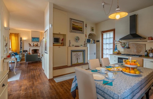 This spacious and comfortable holiday home welcomes you, nestled in the hills of Massarosa and just a few steps away from the quiet village of Stiava. The bright and spacious interior offers plenty of room to enjoy relaxing days in a pleasant atmosphere, even with a large family or group of friends. Look forward to convivial meals, cosy games evenings, stimulating conversations by the fireplace or quiet reading hours in your favourite retreat.