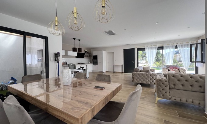 Overlooking the mountain, the villa le ruisseau in Belgentier impresses guests with its fantastic views. The 150 m² property consists of a living room with a sofa bed for 2 people, a kitchen, 3 bedrooms and 2 bathrooms as well as an additional toilet and can therefore accommodate 9 people. Additional amenities include Wi-Fi, a TV, air conditioning, a washing machine as well as beach/pool towels. This vacation rental offers a private outdoor space with a pool, garden, covered terrace, and barbecue.