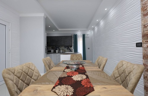 Nestled in the charming neighborhood of Velabisht, just a 5-minute drive from Berat's city center, our delightful 3-bedroom villa offers the perfect retreat for your stay. The bedrooms are thoughtfully designed for comfort, featuring one full bed and four twin beds to ensure restful nights after a day of exploring. With three well-appointed bathrooms equipped with a shower, bathtub, and bidet, you’ll have everything you need for a relaxing stay.